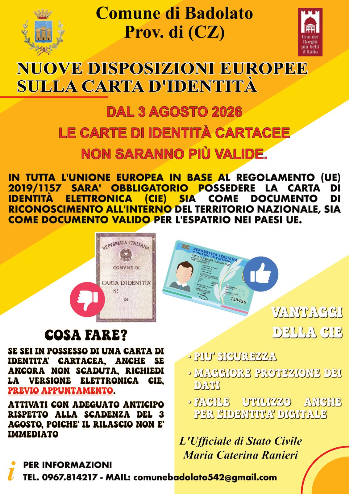 A partire dal 3 AGOSTO 2026, le carte d'identità cartacee non saranno più valide in tutta l'Unione Europea, in base al Regolamento (UE) 2019/1157.